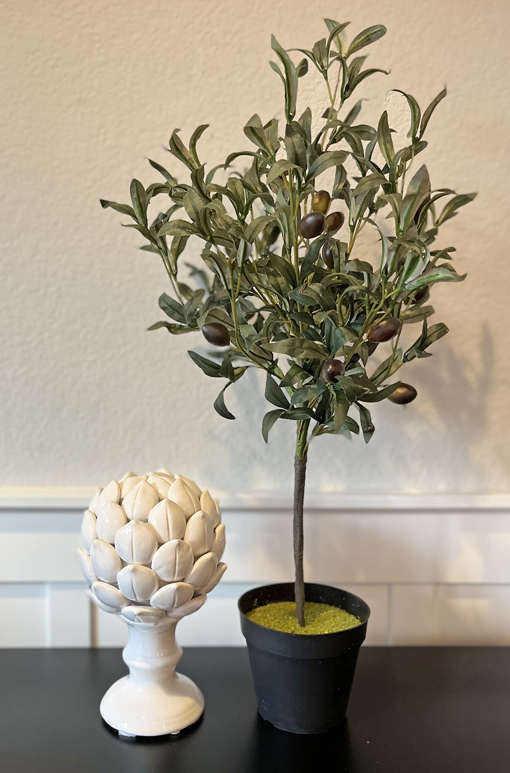 Amazon Com 22 Inch High Artificial Olive Tree In Pot Faux Olive Tabletop Tree With Olive Fruit Faux Greenery Tree For Home And Office Home Kitchen